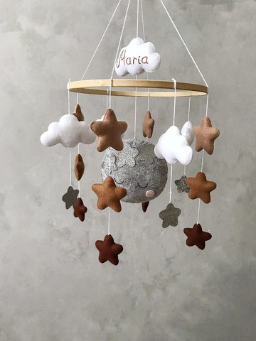 Moon and Stars 嬰兒手機,兒童房裝飾中性,蒙台梭利手機