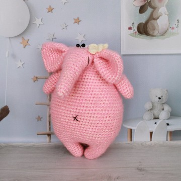 大象高 22 厘米(8.66 英寸)。由蓬鬆的馬海毛紗線製成。填充合成棉。3歲以上兒童玩具我的產品質量上乘,但含有小零件,出於安全原因,不建議 3 歲以下兒童使用。保養說明:為了讓它看起來更好看,我建議您使用液體洗滌劑(不旋轉)在 30 度的溫度下手洗。在水平表面上乾燥。如果您有任何問題,請隨時與我聯繫。