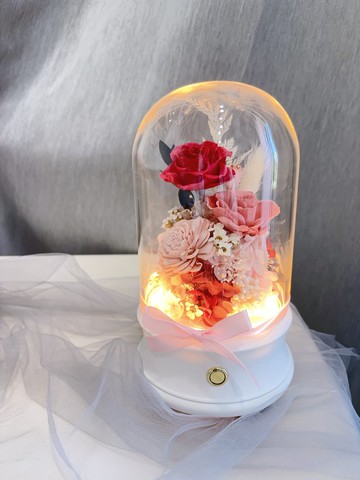 不凋花玫瑰 永生花玻璃盅 有燈款