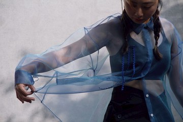 輕透柯根紗裇衫 - 藍色