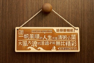 「活得要精彩」上聯:**一帆風順的人生只是清粥小菜**下聯:**大風大浪的過活才能無比精彩****Break Or Make!****A smooth sailing life is no big deal.****It is sailing through raging waters and storms makes life worth living. **尺寸寬:30cm / 高:12cm商品特色● 使用環保回收集成材「密底板」製作。● 使用雷射雕刻,精細度高,質感佳。● 可掛在牆上、門上、辦公桌等地方時時激勵自己。● Made in Taiwan