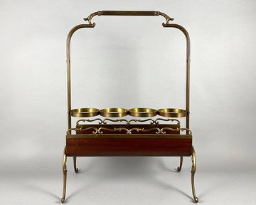 法國復古新藝術風格4瓶架 帶黃銅手柄和木材 | 1970年