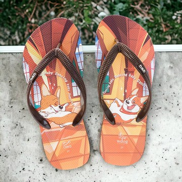 男夾腳拖鞋 汪來汪趣 柯基 狗狗 防滑防水人字拖 跳舞基