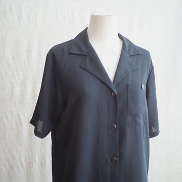 黑微透口袋中性復古古着古著襯衫vintage