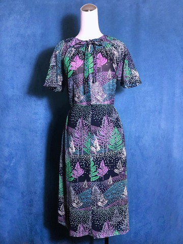 樹木領結短袖古著洋裝/ 國外帶回 VINTAGE