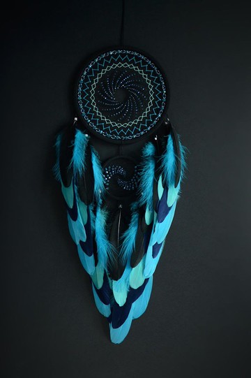 帶閃閃發光珠子的黑色海軍捕夢網,分形牆飾