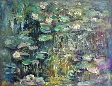 沉浸於這幅莫內風格原創油畫的寧靜之美中。睡蓮池塘 是一幅詩