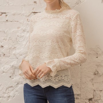 舒適彈性全蕾絲上衣 米白