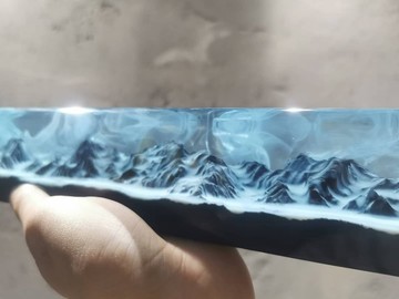 雪山、手工製作樹脂木質紙鎮、獨一無二、藝術裝飾品、天然樹脂木