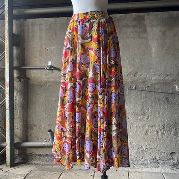 純情百貨行 古著 vintage 古著長裙 黑底幾何半身裙 SL.0035