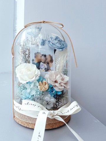 【靜謐】Baby藍 永生花 乾燥花 玻璃罩客製化夜燈 數字 情人 生日