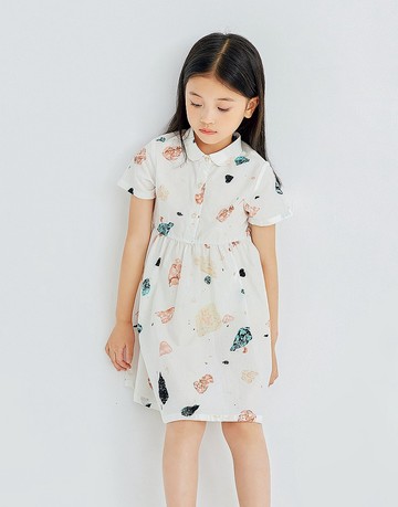 蝴蝶造型口袋小落肩露背洋裝-親子款(童)