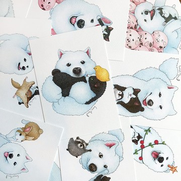 Shine原創可愛水豚和朋友們插畫明信片
