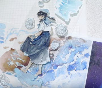 帆 海邊少女 溫柔水彩畫 PET 和紙膠帶 霧銀 10米卷 台灣製