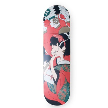 ・寬 20.32 公分、長 80.0 公分(8 吋)的緊湊板面尺寸,擺飾也十分合適。・限量生產・採接單生產形式。自訂單確認後,約需 1 個月的製作時間才能送達。・無論是「滑行的樂趣」或「擺設的美感」這款板面,除了適合用於滑行或進行技巧動作等滑板的本質用途外,作為室內裝飾掛牆/展示也極為理想。・蘊含著「讓滑板從乘具昇華為觀賞藝術」的概念。藝術家的世界觀,透過 silk master 精緻的印刷技術,化為獨一無二的單品。🛠 注意事項與保養須知本產品為木製,請避免存放在高溫潮濕的環境,以免變形。若有髒污,請用微濕並擰乾的布輕輕擦拭,最後再用乾布擦乾。清潔劑可能會導致印刷變色。原則上恕不接受退換貨。請理解顏色可能有些微差異或木紋的自然質感後再購買。