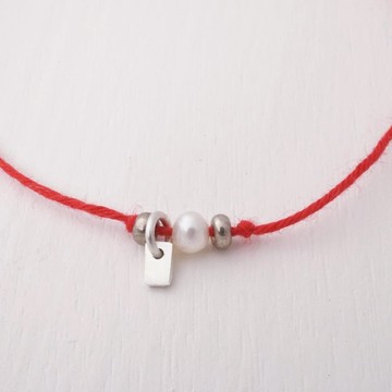 純銀方形珍珠幸運許願手環