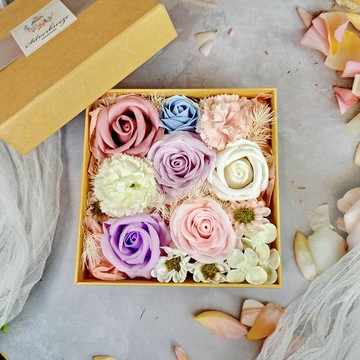 成品花盒尺寸:(15 x 15 x7)cm【材料】香皂玫瑰, 紙,紙盒【花禮】永生花, 乾花,香皂花:https://hk.pinkoi.com/store/silverbreeze?q=%E8%8A%B1%E7%A6%AE【店舖首頁】:https://hk.pinkoi.com/store/silverbreeze?category=5&subcategory=549【購物需知】⭐️人手製作,每件設計商品可説是獨一無異,成品跟提供樣版可能有些微不同,因為花材形態,季節性配花襯草可能因來貨批次或供應缺貨而需要微調,但整體外觀會跟樣板相差不多。如有疑問,下單前歡迎與我們聯絡及查詢後才下單。【郵遞需知】商品由香港寄:《香港》■香港郵政: 掛號郵件,寄件後約1-2個工作天收到。■順豐:約1~2個工作天《台灣》■香港郵政: 空郵掛號,標準派遞約為5~9個工作天。 🔔此商品台灣地區未能寄順豐【溫馨提示】 香皂花●香皂花是加上香皂製作的仿真花/人造花,有淡淡的皂香,此款香皂花只供裝飾,不能當一般香皂使用。● 請置於室內通風乾燥的地方,避免受潮,請勿擺放於被陽光照射的位置。● 隨著時間,香皂花會有點褪色屬自然現象。【注意事項Attention】因拍攝光線關係和顯示屏幕不同,照片顏色與本品可能有些微落差。產地/製造方式香港