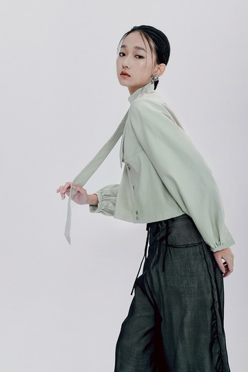 心齋坐忘/黑色羊毛綁帶西裝外套