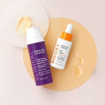 【2024年 升級上市】+高濃度15%純維他命C配方,有感提亮暗沉膚色+添加抗氧化阿魏酸及麥角硫因,配方更穩定、彈亮更有效+輕盈水感的精萃質地,所有膚質適用,可自由混搭其他程序或單獨使用+無人工香料、無色素、無酒精、無麩質、無矽靈、無Paraben系防腐劑https://live.staticflickr.com/65535/53638081337_779b9b65e0_b_d.jpghttps://live.staticflickr.com/65535/53638968376_9b44e322e8_b_d.jpghttps://live.staticflickr.com/65535/53638968411_e47f23468f_b_d.jpghttps://live.staticflickr.com/65535/53638081327_4962e7ca9b_b_d.jpghttps://live.staticflickr.com/65535/53638081317_61e216ec25_b_d.jpghttps://live.staticflickr.com/65535/53639422795_e59e1bea98_b_d.jpghttps://live.staticflickr.com/65535/53639183028_3c4dc57383_b_d.jpg**產品特色**高濃度15%純維他命C搭配雙重超級抗氧成分,有效改善膚色不均、暗沉蠟黃的問題,並可強力抗氧化進而抗老。水感輕盈質地,日間使用可以強化肌膚對抗紫外線及多種外部刺激的防護力;依據不同需求夜間可搭配不同精華與保養程序使用。**產品功效**獨特雞尾酒式特調 最佳抗氧發光配方15分鐘提升光澤*+45% 抗氧化力**97%溫和不刺激***(*依據38位受試者連續使用12週的臨床實驗結果)(**根據人類角質細胞的體外測試結果)(***通過50位受試者之皮膚敏感刺激性評估測試)**如何使用**可以單獨使用或混合其他產品的方式使用C15縮時亮白抗氧精萃。於清潔、化妝水與去角質程序後,取2-3滴塗抹於臉部與頸部肌膚,避免接觸眼睛及嘴唇,依肌膚需求搭配後續保濕產品,白天建議搭配使用SPF30或以上的防曬乳。除了單獨使用,也可以混合任何一款精華液、保濕產品(非SPF防曬產品)使用。(建議開封後三個月內使用完畢)_______________________________________________________________結合三大明星成分A醇、補骨脂酚及胜肽的進階抗老修護精華,透過抗老黃金比例,鎖定肌膚多重老化問題,讓肌膚更細緻、平滑、明亮、年輕有活力。+中濃度0.3%A醇,撫平細紋皺紋、細緻毛孔紋理+植物性補骨脂酚,加強A醇功效、肌膚加倍年輕+協同多種胜肽,強化肌底結構、恢復肌膚彈力+柔滑乳液質地,所有膚質適用+無添加人工香料、無添加色素、無添加酒精https://www.youtube.com/watch?v=V7K-T8B5aFIhttps://live.staticflickr.com/65535/53439173883_f5549a218f_b_d.jpghttps://live.staticflickr.com/65535/53439355054_071a2e4ffe_b_d.jpghttps://live.staticflickr.com/65535/53439039071_833531fffd_b_d.jpghttps://live.staticflickr.com/65535/53439039041_6a7c4d3db6_b_d.jpghttps://live.staticflickr.com/65535/53439452740_3170712c78_b_d.jpghttps://live.staticflickr.com/65535/53439452735_b67ebe6706_b_d.jpghttps://live.staticflickr.com/65535/53439355049_9458061d67_b_d.jpg**產品特色**研究顯示配方中同時添加補骨脂酚及A醇,能夠發揮更卓越的抗老效果。萃取自天然植物的補骨脂酚,不僅有著媲美A醇的修護效果,還能幫助A醇更有效率且持續穩定的發揮抗老修護、撫紋抗皺的效果。此外,0.3%A醇+2%補骨脂酚精華乳結合多種胜肽,深入肌底提升肌膚彈力,重啟青春緊緻。獲獎紀錄:+2022 Bazaar 抗老大賞 最佳電商乳液乳霜+2020 AskMen Grooming Award, Best Anti-Aging Treatment**產品功效**0.3%A醇+2%補骨脂酚精華乳含有三大抗老明星成分:0.3%A醇、2%補骨脂酚及多種胜肽,多層次的修護精華,可以迅速針對紋路、膚色不均及粗大毛孔等老化問題做改善,讓肌膚修護力升級,改善粗糙暗沉,還原健康細緻膚觸。**如何使用**請於清潔、化妝水與去角質後,取適量塗抹於臉部及頸部肌膚,請避免接觸眼睛及嘴唇。依肌膚需求搭配後續保濕產品,白天建議搭配使用防曬乳。逐步增加使用頻率:初期使用,建議先三天使用一次,待肌膚適應後,再逐漸增加次數至每天晚上使用。