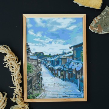 城鎮繪畫老城市原創藝術牆藝術童話藝術品夜間厚塗