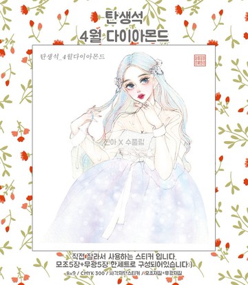 誕生石 四月鑽石 (人物) (jinah) 復古東方可愛女孩貼紙
