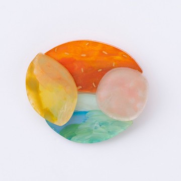 透過著色併疊加壓克力,打造出如藝術品般的胸針。豐富的色彩與形狀交疊,如同立體的抽象畫。是讓簡約服裝瞬間成為亮點的絕佳配件。亦可作為掛飾擺飾,妝點居家空間。(可輕鬆掛置於圖釘或掛鉤上)壓克力的層疊,以及如堅果或枝枒般的圖案。這款胸針如同將各種元素堆疊而成的風景畫。將以桐木盒精心包裝。作為禮物贈送也十分合適。尺寸:45 x 55 mm