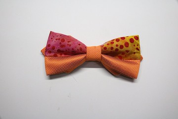 橘色暗纹波点先染布领结特别拼接工艺蝴蝶结