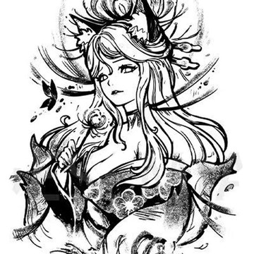 發2張【高級狐耳彼岸花藝妓】真實感半永久刺青圖案草本紋身貼