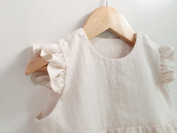 女嬰天然麻荷葉邊上衣,夏季嬰兒麻上衣,麻嬰兒衣服