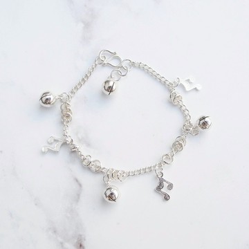 【材質】925純銀【特色】孩子牙牙學語的聲音,就是那幸福的樂章,可愛的小音符送給愛說話的寶貝, 搭配聲音清脆的小鈴鐺,戴在小寶貝的小手上更添可愛。 大女孩若不喜歡這麼多鈴鐺,也可以留言備註幫您拆除鈴鐺。【鍊長】15公分(需改長度可另外備註)【商品均附】包裝盒/手提袋/保證卡/拭銀布【商品均有售後服務】若有來台南可以將商品帶到門市,讓我們為您服務★測量尺寸方法:拿一條細線(縫衣服的線等)圍繞想要配戴的位置**剛好貼平就好**,再將細線拉直以尺測量線幾公分即可**(測量結果不需自行增加或縮減,量剛剛好就好)**https://live.staticflickr.com/65535/51220908765_ce0b5bf197_h.jpg**本館圖片皆為實品拍攝,但因每台電腦顯示器設定不同狀況等,以至於照片與實物多少有些色差,故商品顏色以實品為準。**---------------------------------------------------------------------★ 925純銀不易過敏品質可戴著洗澡,一般正常配戴依體質(酸鹼)不同氧化速度也不同,銀飾氧化變黑後可用牙膏/洗銀水/拭銀布保養清洗,即可回復銀白色澤容易保養。---------------------------------------------------------------------**保養方法**• 飾品不配戴時請清潔乾淨放入密封袋或包裝盒內保存• 請勿配戴銀鍊泡溫泉避免變黑**保養小物使用方法** 居家保養小撇步★軟毛牙刷 + 牙膏1.沾取些許牙膏與清水2.輕刷銀飾後沖洗乾淨3.將飾品擦乾或用吹風機烘乾4.可搭配拭銀布使用,使銀飾回復光澤★拭銀布為平日保養飾品用,擦拭金屬表面★洗銀水1.把銀飾放入洗銀水中,浸至3到5秒2.從洗銀水中拿出飾品,併用大量清水沖洗3.將飾品擦乾或用吹風機烘乾4.可用拭銀布搭配使用,使銀飾回復光澤**復古黑飾品請勿浸至洗銀水中,否則會變成原銀色喔 !****產地/製造方式****產地台灣手工製作**