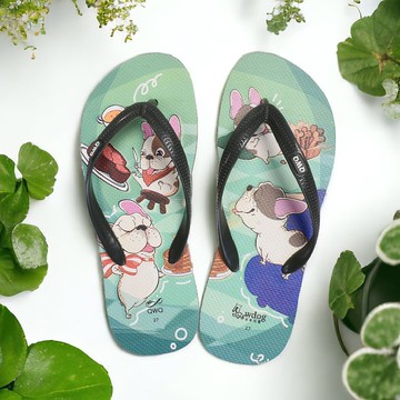 女款防水防滑夾腳拖鞋 馬子狗聯名人字拖 情侶涼拖鞋 -海洋潛水-
