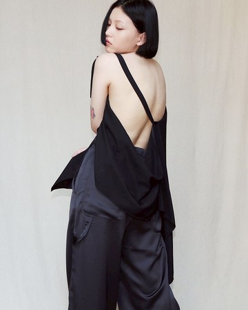 南瓜Vintage。LIMI feu 黑色 變形 不對稱 露背 上衣