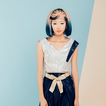theme: packaging (ˈpækɪdʒɪŋ):: 銀箔糖果紙短上衣 ::*銀色光澤糖果紙質感面料,閃耀別緻*時下流行的短版設計,拼接藍色長條,俐落設計感SIZE:/ S /胸圍: 83cm衣長: 37cm/ M /胸圍: 87cm衣長: 38cm/ L /胸圍: 91cm衣長: 40cmcotton 50%, polyester 50%/ 洗整方式 / Machine wash, gentle cyclehand washDo not bleachDo not tumble dryIron max 110°C機洗建議放洗衣袋內產地/製造方式產地台灣 師傅手工小量製作