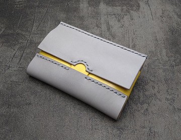**剝開式開蓋設計**https://live.staticflickr.com/65535/52949412476_59872f0a4b_o_d.gif延續裹系列的簡約設計以沉穩的淺灰色外層搭配活潑的黃色內部主體特別的剝開式開蓋設計只需將外層上半部上蓋整體向後彎折就能露出內部主體名片讓打開名片夾更直覺更自然順手名片夾合上時將上蓋舌片插入外層下半部即可整體以全皮革縫製不使用任何金屬部件內部主體為環型結構置放空間充足至少能放入常見的一般通用尺寸名片20張內部主體與外層相互縫合處所形成的夾層可置放少許與對方交換收到的名片與自有名片做出區隔整理收納尺寸 /10.5x7x1.3cm顏色 /淺灰色X黃色材質 /植鞣牛革※**如有打印字需求請先以站內訊息向我們訊問,需打印字之商品皆為客製化商品不得退換貨**※天然動物的皮革都可能會有自然毛孔紋理皺折或生長時所伴隨的各種大小傷、疤痕 購買前請先理解認同※作品照片可能因**螢幕顯色條件不同而有些許差異請事先確認或提問後再行訂製購買** 所有作品皆為接受訂單後才進行製作 訂製購買後若非重大瑕疵恕無法接受退換貨產地/製造方式台灣設計手工縫製