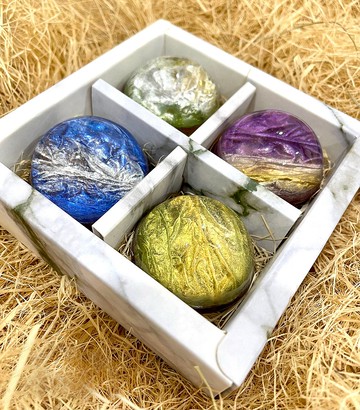 *** 一般下單後,24小時 (選擇7-11跟全家的) 內出貨,如需急單,請先跟我確認交期再下單,謝謝您*因這款皂為純手工製作因此成皂會和圖片有些許不同,不挑款,接受者再下單,謝謝。🎁🎁🎁附贈不挑款禮盒袋子一份🎁🎁🎁產品特性:- PH6.0- 含保濕因子「胺基酸」- 溫和洗淨力,適用於臉部、身體及所有膚質全成分:月桂醇聚醚硫酸酯鈉鹽(Sodium Lauryl Ether Sulfate)、椰油醯基麩胺酸三乙醇胺鹽(TEA-Cocoyl Alaninate)、月桂醯谷氨酸(Lauroyl Glutamic Acid)、去離子水(Deionized water)、甘油(Glycerol)、薰衣草精油(Lavender Essential Oil),、妝品級雲母粉(Mica Powder)使用方法:沾水後搓出泡沫塗抹皮膚後用清水沖洗乾淨保存方式:使用後請保持皂體乾燥用途:清潔皮膚製造日期:接單後才開始製作保存期限:1年(處於乾燥環境中)淨重:33公克+-3公克(單個淨重)批號:印製於外包裝上注意事項:請放置陰涼處,及兒童伸手不及之場所保存。避免陽光直射。本產品非食物,不能食用。如遇肌膚不適,請暫緩使用,並諮詢醫生。製造商:匠然工房
