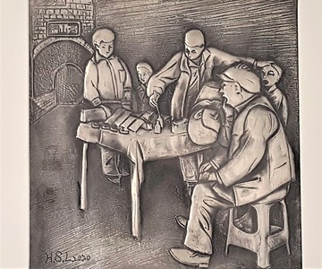 錫雕 中場休息 尼泊爾古城的理容師 畫框