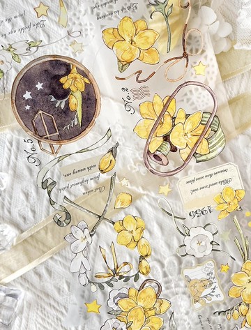 鶯歌花影 淡黃小花 鳶尾草 PET 和紙膠帶 台灣製 10米卷