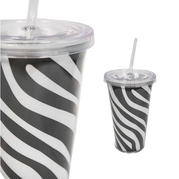 六福村x六福莊 斑馬動物紋雙層杯500ml 官方直營 環保杯
