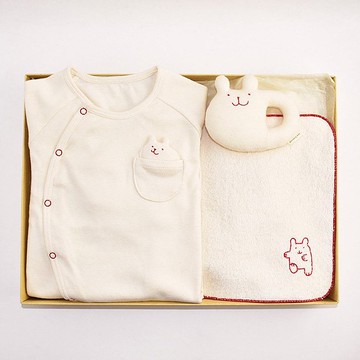 禮品組 TW-1 100% 有機棉 2way 洋裝、搖鈴、迷你毛巾、3 件組、兔子、熊、日本製造