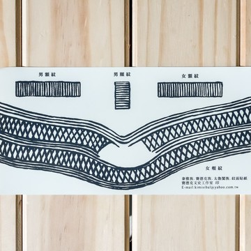 ❗️田貴實老師手繪設計製作,請勿仿冒❗️泛泰雅族的生命禮俗,是每一社會文化的的範疇,泛指人與人之間的文化,這種文化通常表現於一個人的生命習慣上,也就是一個人從出生到死,中間經過社會群體型固定式的習慣,足以約束個人的行爲,支配實際生活的規範。從社群的角度來看,文面可視同成年禮,完成文面的青少年,即可脫離不必負擔社會責任的兒童期。「只有男子在強健的體魄與獵頭的經驗,女子在織布技術的成熟,及已初經的情況下,才能被文面。」透過文面,部落的生命力得以延續,個人也才可以取得婚嫁的資格。對於族人來說,文面除了有它社會功能外,另一種重要的因素,就是美觀。本產品由田貴實老師手繪設計製作,田貴實老師致力於泛泰雅族群的文面文化和語言研究,於2017年榮獲第24屆全球中華文化藝術薪傳獎,著有《永不消失的榮耀記憶》。|尺寸|長20公分,寬10公分 購物須知 】❗️❗️❗️超重要❗️❗️❗️⛔️下標前請先【詢問商品庫存】確認現貨量再下單⛔️⛔️照片商品會因螢幕顯示與拍攝光源的不同產生些微色差,皆屬正常現象⛔️▶ 本商店為免用統一發票店家,隨貨附上收據。▶ 商品出貨時間為1-5個工作天(例假日除外),下單前可先至聊聊詢問。▼▼退換貨須知❗️❗️❗️購買前請特別要看過一次 ❗️❗️❗️⛔️鑑賞期非試用期⛔️❗️ 如對商品有疑慮或猶豫者,請先不要拆開商品外包裝並保持商品完整性❗️ 依據民法第259條之規定,如拆開外包裝視同使用,本賣場會評估商品剩餘價值(福利品 、拆封品)向您收取費用❗️ 收到商品請先確認商品是否正確,確認無誤後再點選「完成訂單」按鈕,以免影響退貨權益。❗️ 有任何問題歡迎使用聊聊洽詢,國定假日、例假日賣場暫停回覆訊息及出貨。⛔️不適用鑑賞期退貨的情形⛔️根據消費者保護法規定,若商品為依消費者需求所為之客製化賣場,已符合理例外情形,賣家應先行告知消費者後,始得排除鑑賞期之適用❗️ 如遇到商品缺貨,小編會用聊聊告知您