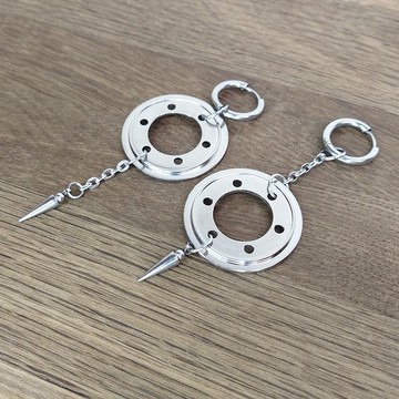 男士或女士的賽博朋克耳環。 不匹配的 grunge 耳環銀色調