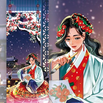 四季 - 冬季女孩韓服插畫明信片 (uha) 書籤