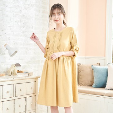 註:尺寸表均為平鋪手工測量,根據不同面料、厚薄、面料彈性等原因,出現±2-3cm的誤差屬正常現象。圓領洋裝版型寬鬆,正肩款式非常適合微肉的女生,穿著起來更加顯瘦,胸前塔克增加立體感,細緻木扣讓整體質感更加分,裙襬特殊弧形造型口袋加上細緻打褶設計增加層次分量,款式日系休閒。成份材質100% 棉