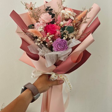 【永生花花束】粉色系 不凋花 索拉花 乾燥花 紀念日 情人節 畢業