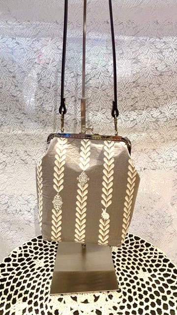 MBC 人手製 麥穗 15cm 框 口金包 灰色