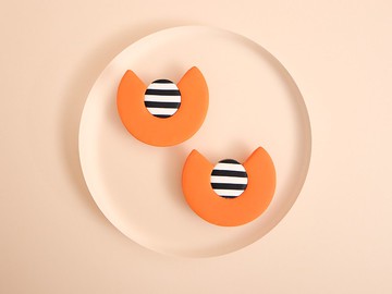 橘色與條紋 耳環/耳夾/金屬過敏對應 / 24
