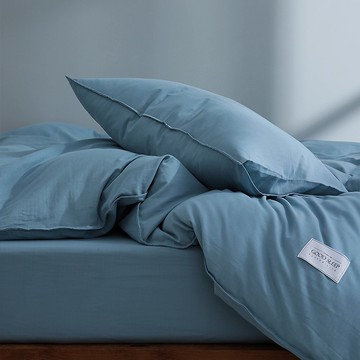 雙人新款單色100%有機棉標準床包枕套組 海藍色