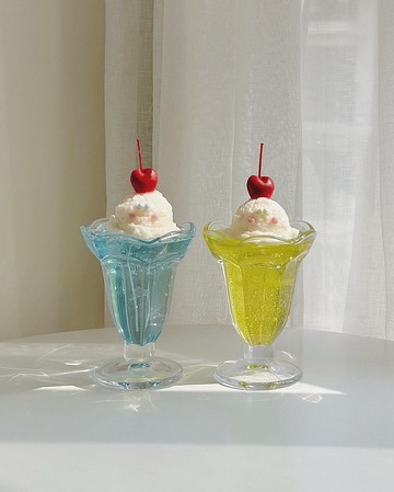 **平行時空—07**-クリームソーダ ♬ 來自日本喫茶店的夏日浪漫 🎐日本的冰淇淋蘇打汽水文化起源於西元 1902 年 𖤐´-日本第一家生產並銷售蘇打汽水和冰淇淋的冷飲櫃就設立於資生堂藥房內 ૮ . ̫ . ა ⸝꙳這個冷飲櫃後來發展為「 資生堂 Parlour 」是專門經營餐飲方面的業務( 就是現在大家熟知販售保養化妝品的那個資生堂 )這裡的冷飲櫃指的不是像冰箱那樣子的指的是有裝設龍頭,專門製作各式聖代、奶昔、蘇打水等的機台 🍧🍨🍦資生堂創始人福原有信在西元 1900 年時參觀了巴黎博覽會回程途經美國,返回日本後他仿照了美國的方式在自己的藥房一角設立了一個冷飲櫃注重真實性的他不只進口了機台,還進口了玻璃杯、吸管、勺子和糖漿這種對新價值、高品質和真實性的追求至今仍是資生堂 Parlour 的策略冰淇淋和蘇打汽水可以說是代表西洋的時尚飲食對當時的人們來說是一件很炫且有小小奢華感的事情這個文化便以此發源起來 ⎯⎯ ⟡.·冰淇淋汽水也給人一種憶當年、懷舊感在復古風情興盛的現代實在很受歡迎ㄟ ^ω^)/之前限定販售的汽水一直以來都大受歡迎來來回回嘗試多款容器後、最後找到這個很適合的杯子 🍧現在終於正式上架為常態商品了~~絕對是最特別的蠟燭 (つ´ω`)つ櫻桃和冰淇淋是大豆蠟、透明汽水部分是果凍蠟整杯都可以點燃,擺著不點也會超香~~~一起挑選專屬於你的夏日風味吧 .ᐟ✷ 特殊需求或顏色、任何疑問都歡迎私訊我們討論ㄛ ✷https://live.staticflickr.com/65535/52253738426_4a66dc2bd8_o.jpg⋰» 1997為接單訂製,下單前請仔細考慮» 從下單製作到完成出貨需要等待大概5-15個工作天» 賣場為半客製服務,下單時請備註香味,香味表請參考圖片⋰» 蠟燭如果出現白霧白膜是大豆蠟的正常現象» 熄滅蠟燭請使用滅燭器具:: 盡量不要用吹熄的方式,容易產生黑煙跟燭芯歪掉的問題» 每次點燃前請先修剪燭芯 ⸝ 棉芯剩 0.5 公分左右的長度» 造型蠟燭燃燒時底下要放個盤子或是紙張,並將四周稍微往上折:: 避免蠟融化到桌上床上或是流得到處都是» 如不小心打翻蠟液,請用衛生紙擦拭即可:: 絕對不要用水會越清越崩潰.ᐟ.ᐟ𖤐如有任何疑問請寄信給1997𖤐