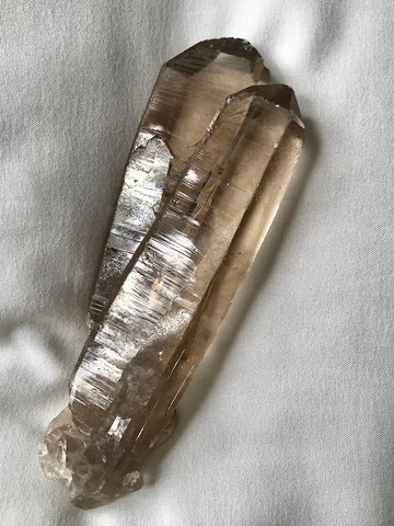 巴西 雙生 冰透 茶晶 煙晶 車輪紋 彩虹 擺件 水晶簇