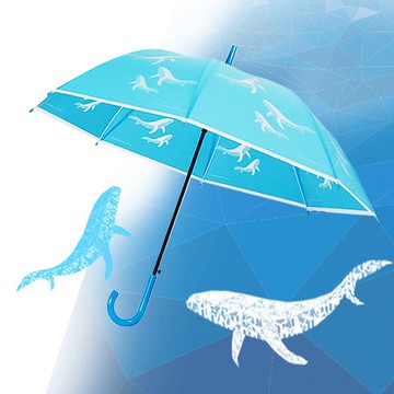 雙龍鯨魚自動直傘果凍傘 大傘面環保傘 動物插畫直傘(水藍)
